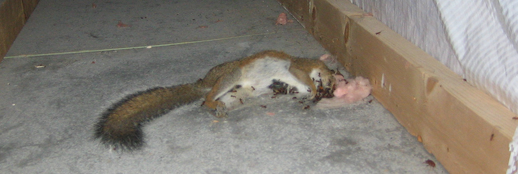 is mostly located at the top of the kitchen roof; and sometimes rats, squirrels, or mice may die in there due to a